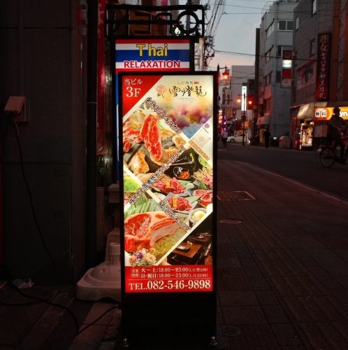 この大きなジンギスカンの赤い旗と雪燈籠の看板が目印です!
